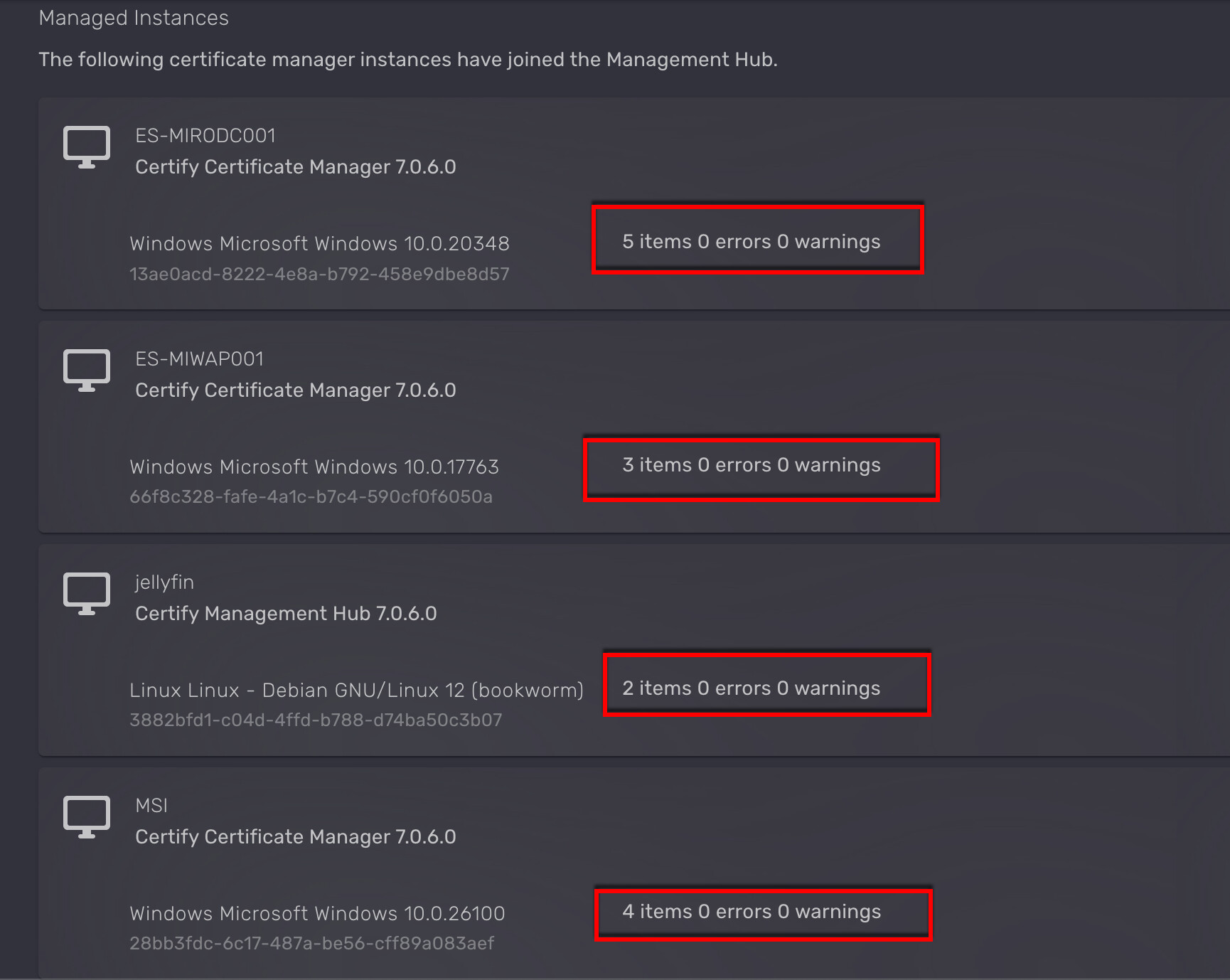 @esmiuser further to the issue with summary counts being wrong, I think this is caused by external certificate monitoring, e.g. if you have any other supported ACME clients installed on any of these instances their numbers will be counted [possibly even double-counted] in the summary but not in Managed Instance counts.